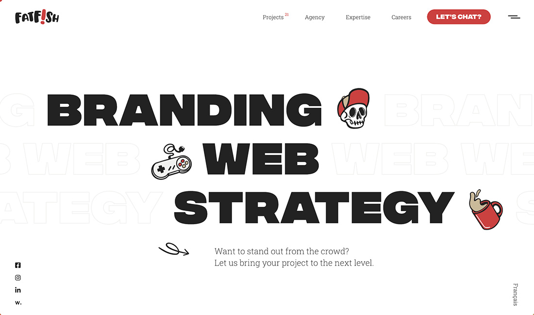 有時,最好的動畫片不是全屏接管,而是具有更簡約的美感。在上面的設計示例中,簡單的卡通元素有助于攜帶作品集,并讓您一睹該機構的風采。有趣的卡通也貫穿整個設計。