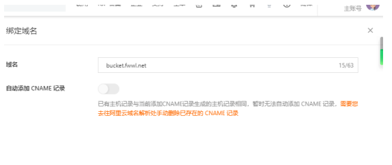 這里有個“自動添加CNAME記錄”的選項,其實很好理解,就是你的OSS存儲和域名是在同一個阿里云賬號的話,開啟后域名會自動添加一條解析記錄,如果不在同一個賬號下,就不要開啟了,添加后如下圖所示: