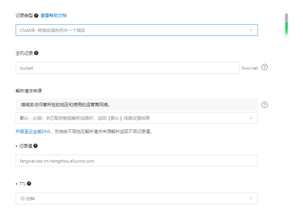 假設OOS存在與域名不在同一個賬號,則需要解析域名,需要添加的解析記錄如下圖所示: