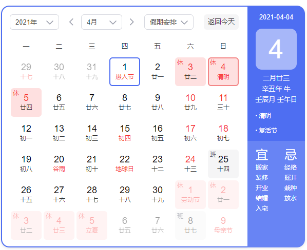 清明節(jié)是中華民族古老的節(jié)日,既是一個(gè)掃墓祭祖的肅穆節(jié)日,也是人們親近自然、踏青游玩、享受春天樂趣的歡樂節(jié)日。又到春風(fēng)送暖、草長(zhǎng)鶯飛的時(shí)節(jié)。春天的綠意如約而至,一年一度的清明節(jié)也即將到來。根據(jù)《國(guó)務(wù)院辦公廳關(guān)于2021年部分節(jié)假日安排的通知》,廣州騰虎網(wǎng)絡(luò)2021年清明節(jié)放假安排如下 :