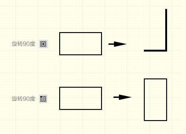 當我們以矩形的中心點90度旋轉(zhuǎn)時,得到的矩形缺失了兩個邊。這是什么原因呢?得知這個矩形的長是奇數(shù)、寬是偶數(shù)。當以中心點旋轉(zhuǎn)時像素不能整分,所以得到這種結(jié)果。解決辦法是,可以選矩形的四個角的任一頂點為中心點旋轉(zhuǎn),或者使矩形的長寬都為奇數(shù)或偶數(shù)值。如果我們的操作是旋轉(zhuǎn)并縮放圖形,更好是旋轉(zhuǎn)完按確定,再進行縮放。不要連續(xù)操作完再確定,這樣得到的結(jié)果會比較清晰。