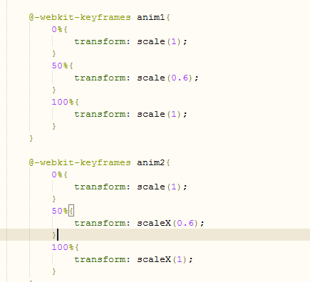 接下來定義動畫,anim1 anim2是動畫名字,可以隨意起。里面的就是對應進度所改變的屬性。
