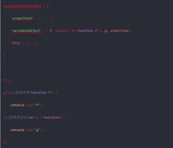 我們看到,在預(yù)解釋階段函數(shù)聲明的f是被指向了正確的函數(shù)得以執(zhí)行,而函數(shù)表達(dá)式g被賦予undefined,undefined無法被當(dāng)作函數(shù)執(zhí)行因此報(bào)錯(cuò)g is not a function.